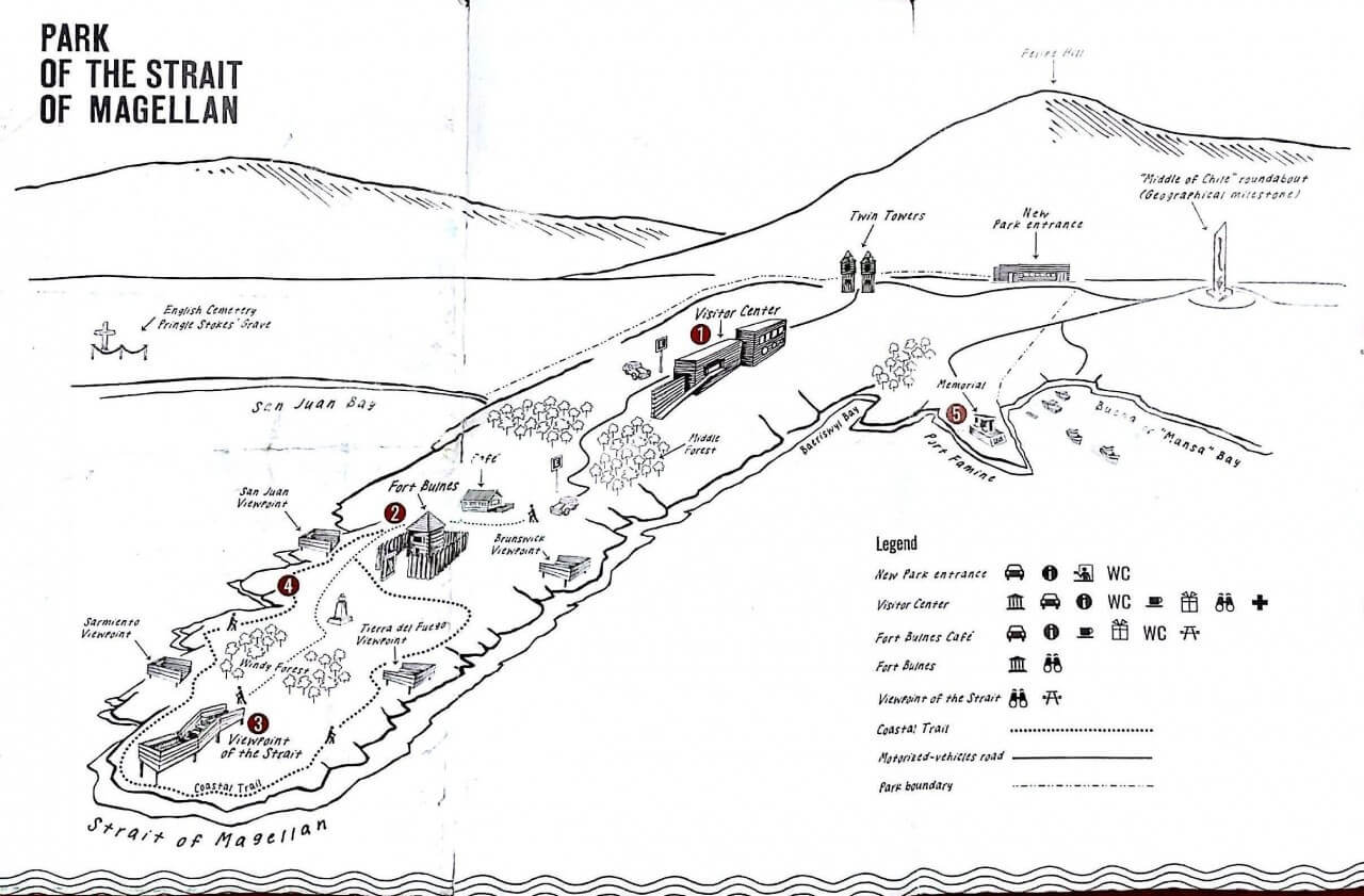 The gate to the Strait, The Visitor Center hosts an interpretative display focusing on the Natural and Human History of the Strait of Magellan. From its terrace, a panoramic view of Port Famine is possible.